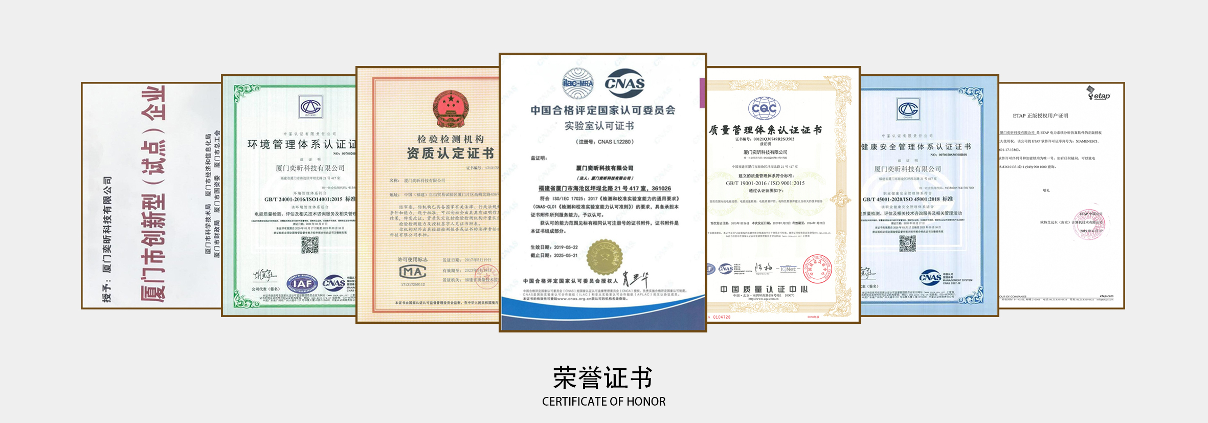 廈門奕昕科技有限公司,具備第三方電能質量檢測及校準CANS資質、國家質量認證中心頒發的CQC質量認證管理體系認證證書、電能質量檢測CMA資質,具有專業的技術團隊;